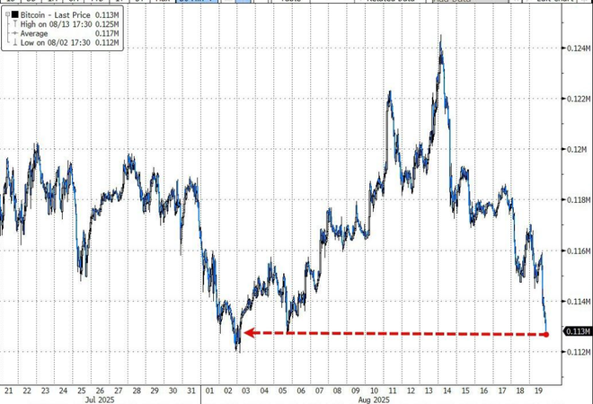 与此同时,其他风险资产也未能幸免。比特币价格下跌,触及近三周低点,自6月以来首次跌破50日移动均线。随着市场整体风险偏好下降,黄金和石油价格也出现下跌。