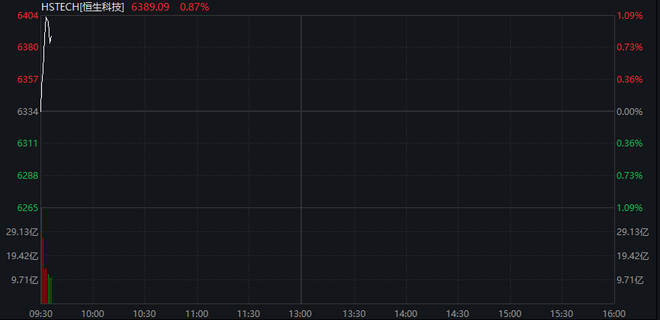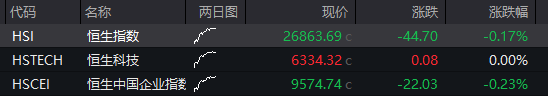 恒指低开0.17%,恒生科技指数平开。