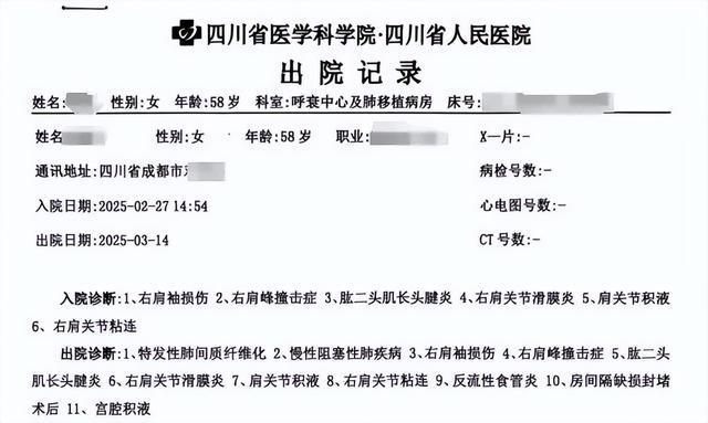 翟先生表示,母亲本只是外伤,结果意外得知身患绝症,一家人都伤心欲绝。直到母亲在按医嘱服用了约3个月抗纤维化的药物尼达尼布治疗后,前往医院复查,再次做了胸部CT,才发现母亲并无肺间质纤维化情况,此前的“绝症”系误诊,CT结果是他人的。他将此事通过四川省12345热线进行投诉。