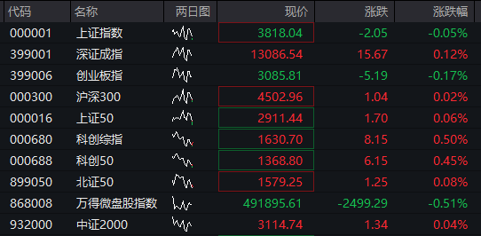 A股:截至发稿,沪指跌0.05%,深成指涨0.12%,创业板指跌0.17%。![]()