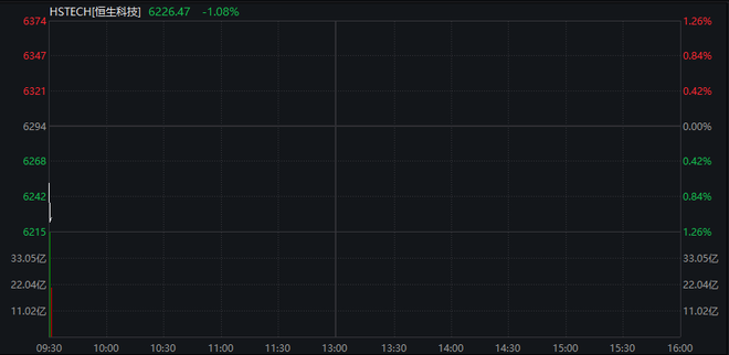 恒指低开0.32%,恒生科技指数跌0.68%。