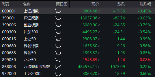 上证指数低开0.45%,创业板指跌0.79%。