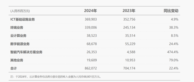 华为2024年年报显示,其全球销售收入为8621亿元,同比增长22.4%。其中,智能汽车解决方案业务营收263.53亿元,同比增长474.4%,首次实现当年盈利的同时,也成为华为增长最快的业务板块。