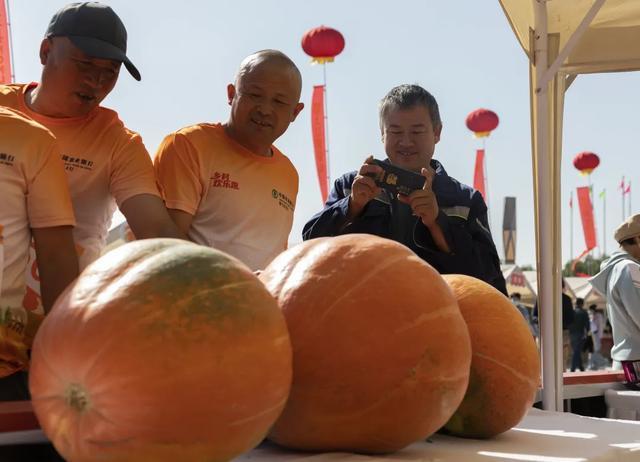 9月23日是第八个中国农民丰收节,民众在宁夏银川市贺兰县“丰收大集”上打卡巨型南瓜。中新社记者 杨迪 摄
