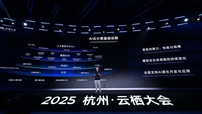 基础设施则是阿里云的另一重点。大会现场,阿里云发力从底层芯片、超节点服务器、高性能网络、分布式存储、智算集群到人工智能平台、模型训练推理服务的全栈AI技术能力。