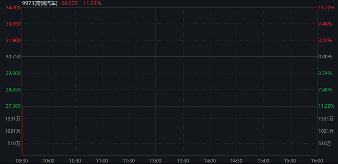 港股今年最大车企IPO诞生,奇瑞汽车正式在港交所上市,开盘涨超11%。