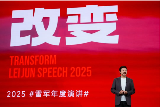在上半场,他分享了小米玄戒芯片和小米汽车背后的故事,他说5年前的自己“充满着难以言说的焦虑”,他认为,小米所处的行业,“苹果、三星、华为如同几座无法逾越的大山,几乎看不到赶超的希望。是躺平认命,还是继续打拼?”