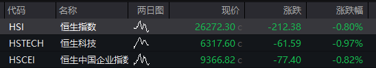 香港恒生指数开盘跌0.8%,恒生科技指数跌0.97%。