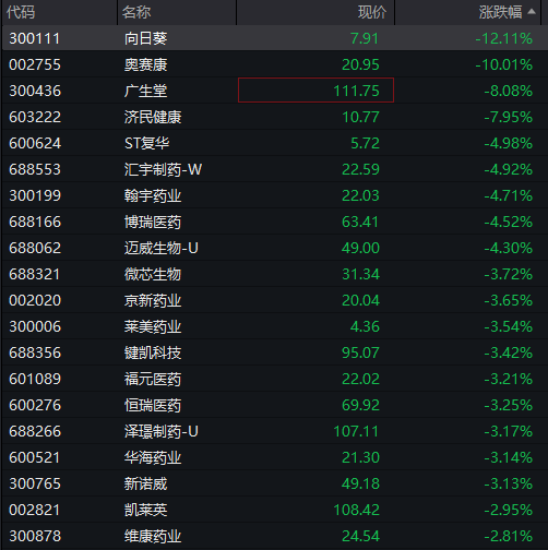 医药股早盘走弱,广生堂、奥赛康跌超8%,济民健康、翰宇药业、万邦德、恒瑞医药、汇宇制药等纷纷走低。