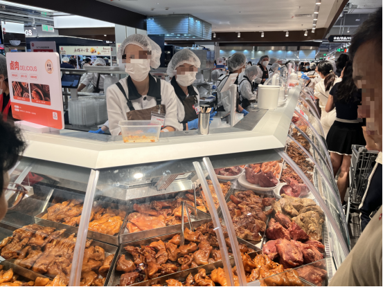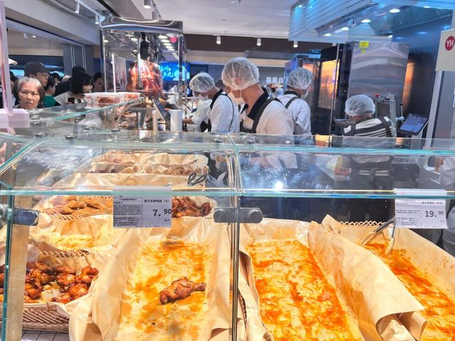 9月26日上午,记者在现场注意到,同样是本次引入的特色档口福州鳗鱼丸处挤满了等待给商品称重的顾客,开业两小时后,熟食区的新奥尔良烤鸡、烤鸡腿等多样产品已经售空。