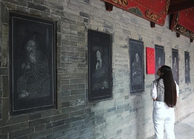 院落的一侧是碑廊,整齐地在墙上镶嵌着数十块石碑,雕刻有十八罗汉像,大多是明清时期的作品。其中一块唐吴道子画观音像,碑上的观音像线条流畅飘逸,神态慈悲安详,仿佛下一秒就要从石碑上走下来一般。