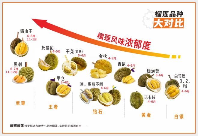 众所周知,在榴莲届存在着一条“鄙视链”:价格昂贵的黑刺和猫山王稳居顶端,竹脚、苏丹王等品种紧随其后,泰国金枕、越南干尧则多半被归类为“耐储存型入门款”。