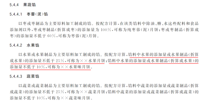 根据GB/T 19855-2023,宣称“水果月饼”的产品需要含有相应的水果成分。以榴莲为例,标准要求馅料中榴莲含量不能低于25%,才能称为“榴莲月饼”;馅料中榴莲含量不低于10%,才能称为“榴莲味月饼”。因此,建议消费者要仔细辨别是“榴莲月饼”还是“榴莲味月饼”,后者可能仅使用榴莲香精或少量果泥制作,成本自然低很多。