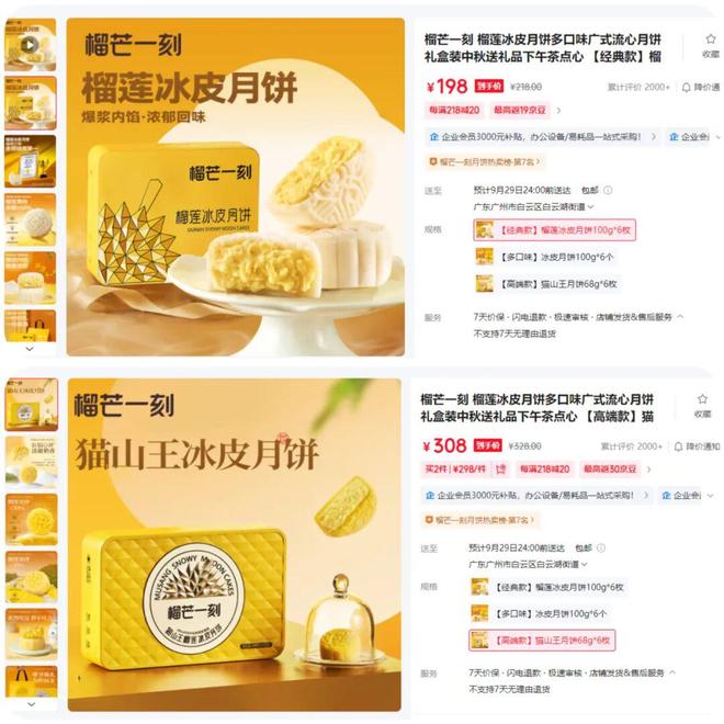 不同品牌的“榴莲月饼”,每100克价差超10倍
