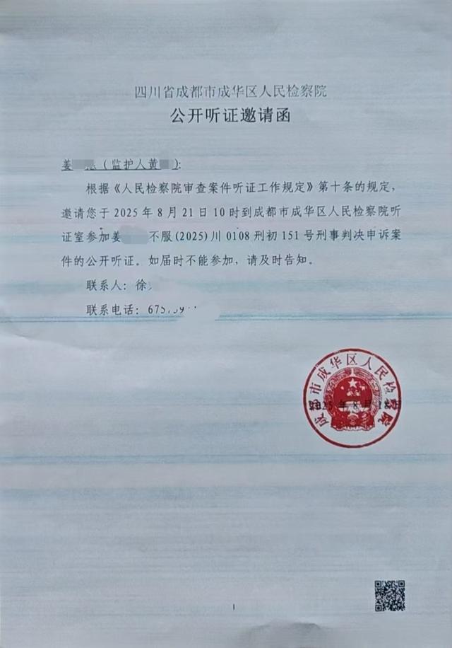 据介绍,原告黄女士对于原刑事判决认定姜某某构成盗窃,却又15万元不予认定,且免予对其刑事处罚的判决结果一直表示不服,并不断多方反映申诉。2025年8月21日10时,成都市成华区人民检察院就此申诉案召开公开听证会。