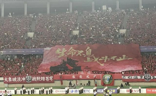 9月27日晚,苏超常规赛最后一轮淮安队和徐州队的比赛前,观众在看台展示tifo(大型横幅)。国是直通车 段修健 摄