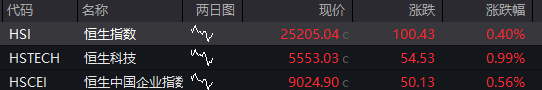 恒指高开0.40%,恒生科技指数涨0.99%。
