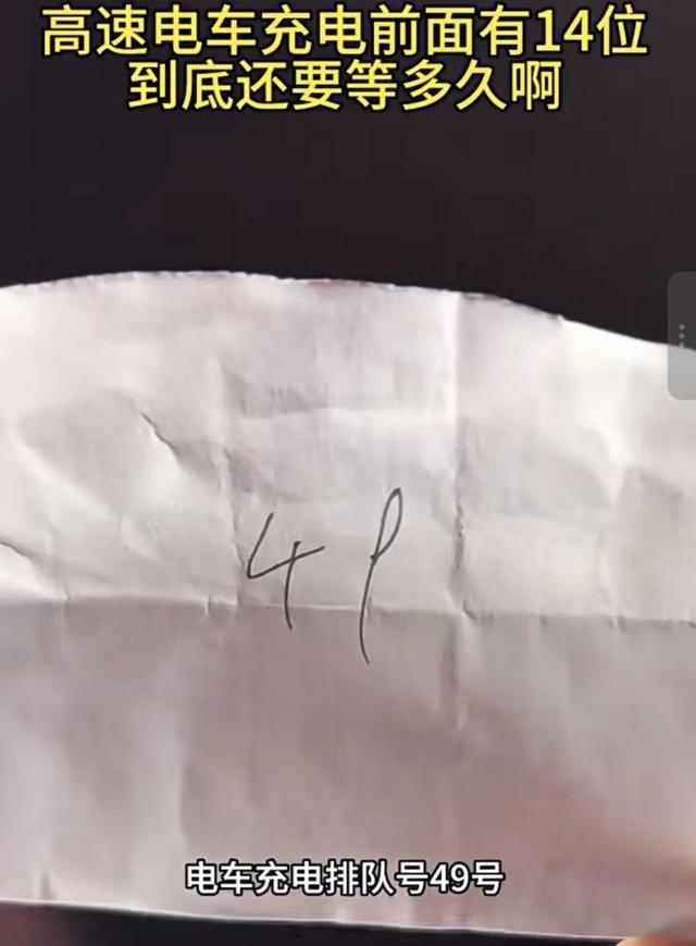 国庆高速路充电桩排队等待,有车主等待49号充电桩,等待时间长达3小时,充电高峰期仍不够用。