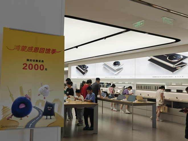 “华为Pura80 系列和华为Mate X6,至高可享2000元优惠。”一华为智能生活馆店员称。国庆期间,该门店人头攒动,消费者挤满了多个展台,围着体验各项新功能。