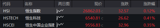 恒指高开0.12%,恒生科技指数涨0.41%。