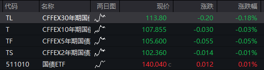 债市:国债期货全线反弹,截至发稿,30年期主力合约涨0.09%,10年期主力合约涨0.04%,5年期主力合约涨0.03%,2年期主力合约涨0.01%。![]()
