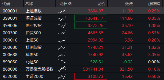 上证指数跳空高开0.4%,逼近3900点;科创50涨2.12%。