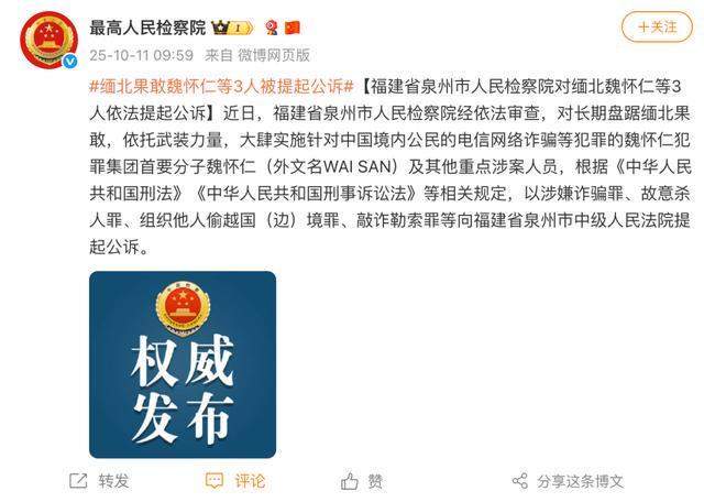 缅北电诈团伙头目魏怀仁等三人被提起公诉,涉嫌多重罪名