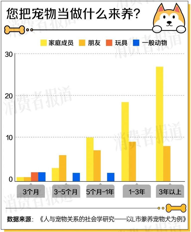 仅仅只是时间的累积就会改变关系中情感的浓度。一项调研结果显示,养宠三个月以内,人们在心理上有时还将宠物看成是玩具、一般动物,在每天喂养中,感情随之加深。养宠一年后,宠物身份就开始发生变化,它不再是人们眼中的玩具、一般动物,而是宠物主的朋友,甚至是家庭中的一名成员。
