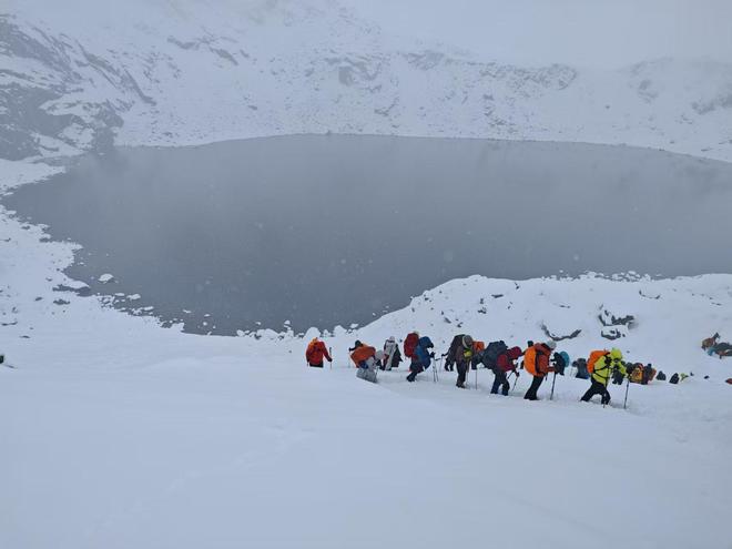 作为经验丰富的徒步团领队,海子明白暴雪背后隐藏的危险,“之前在其他高海拔地区,就有突降暴雪导致帐篷被掩埋,徒步者出现低氧封闭窒息的事件。所以我这次是非常紧张的,巡夜、铲雪,晚上完全不敢懈怠。要保障客户安全。”