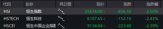 恒指低开2.5%,恒生科技指数下跌2.43%。