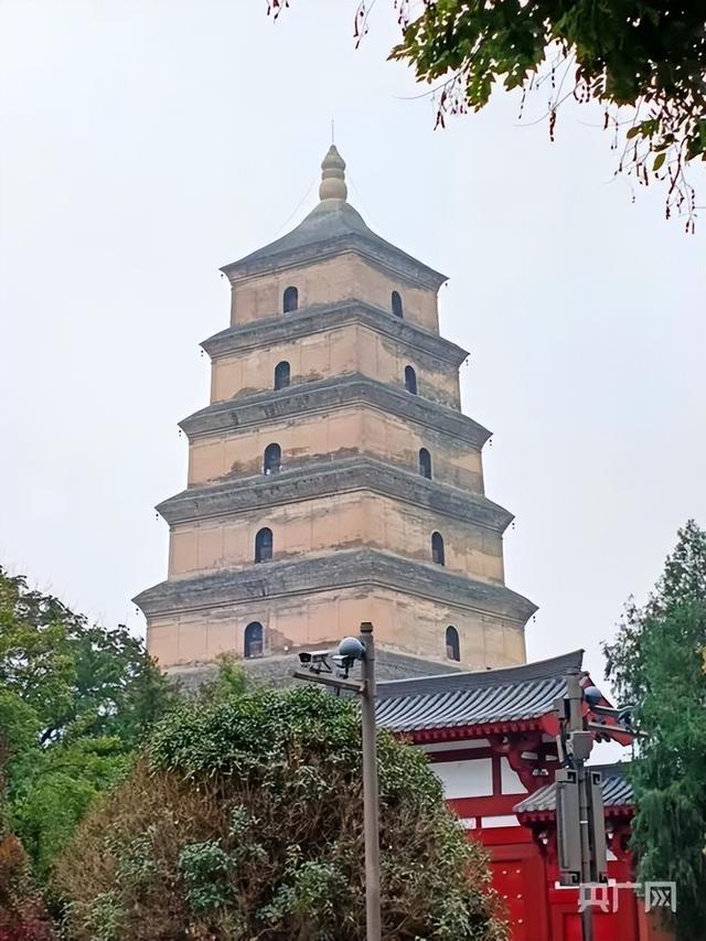 大雁塔被连阴雨打湿受潮(央广网发 高悦 摄)