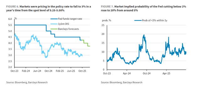 因此,巴克莱维持其“做多美债久期”的建议。当然,报告也提示了一个风险:如果美联储的信誉受损——例如,在通胀依然粘性的情况下过度降息,长期收益率仍可能面临上行压力。但就目前来看,这并非其基准情景。