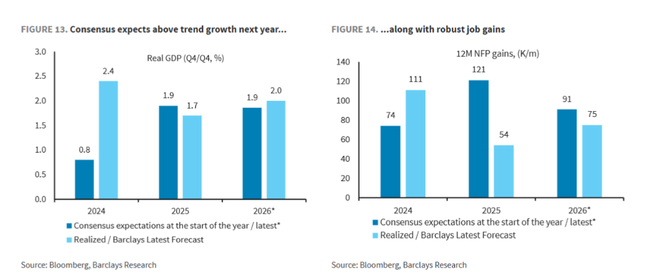 巴克莱指出,当前与2024年最大的不同在于市场对经济的预期。如今,投资者已经相当乐观。