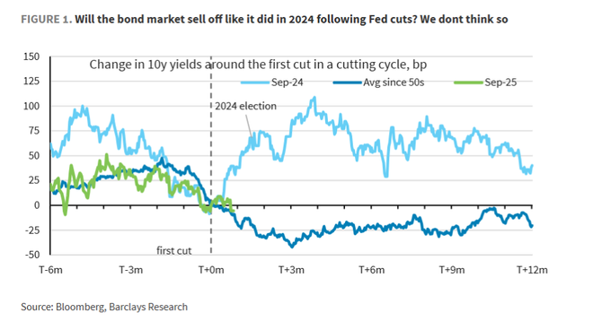 据追风交易台消息,随着美联储再次进入降息通道,市场对去年债市“黑天鹅”的记忆犹新,但巴克莱10月14日发布的研报给出了截然不同的预测。