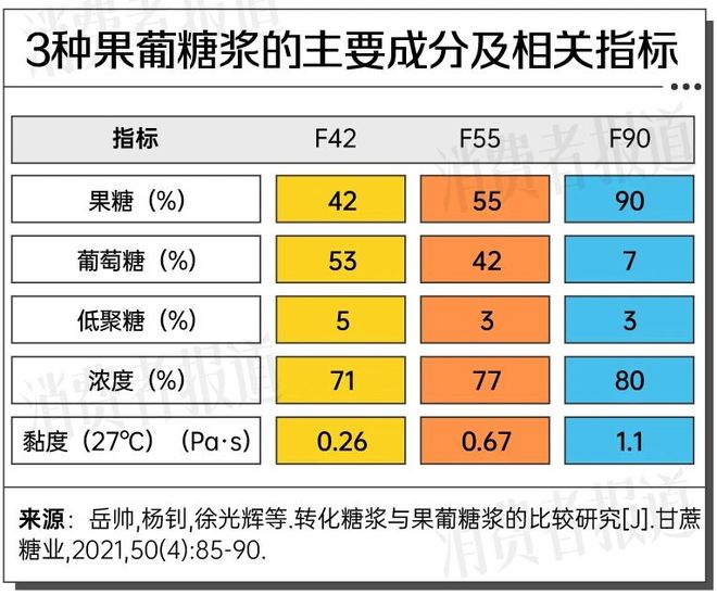 有食品行业人士对《消费者报道》指出:“目前,在国内乃至全球范围内,F55型果葡糖浆都是使用最广泛、需求量最大的型号。其甜度与蔗糖几乎一致,生产商用其替代蔗糖时,无需重新设计配方和调整风味,即可实现无缝替换。”