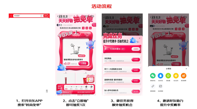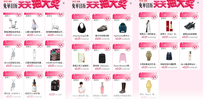 即日起至11月11日,大家可以打开京东APP搜索“时尚免单”,查看完整的抽奖日历,每天都有服饰美妆大牌免单送,即刻参与锁定这份专属幸运!