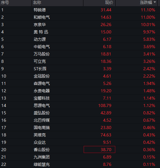 早盘充电桩概念高开,奥特迅竞价涨停,和顺电气、通达股份、盛弘股份、国电南自、通合科技高开超6%。