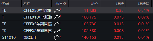 债市:国债期货全线下跌,截至发稿,30年期主力合约涨0.31%,10年期主力合约涨0.07%,5年期主力合约涨0.01%,2年期主力合约涨0.01%。![]()