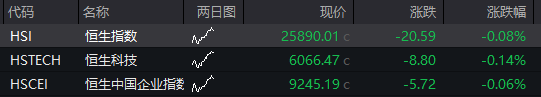 恒指低开0.08%,恒生科技指数跌0.14%。