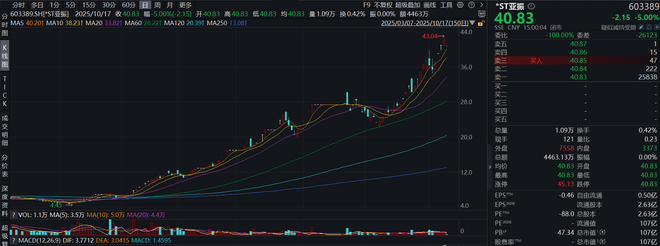 10月17日,“妖股”*ST亚振(603389.SH)股价跌停,报收40.83元/股,总市值约107亿元。就在前一日晚间,公司公告提示股票交易风险,提醒投资者关注退市风险与业绩不确定性。