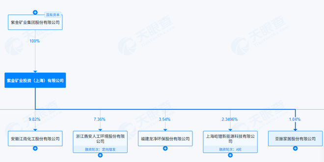 天眼查信息显示,紫金矿业投资(上海)有限公司系紫金矿业(601899.SH)的全资子公司。紫金矿业作为国内头部矿企,其投资子公司持股*ST亚振,进一步引发资本联想。