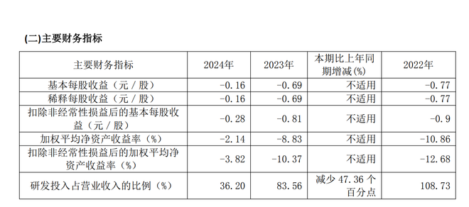 奥比中光的财报轨迹印证了这一点。2021年,公司研发投入占营收比重高达81.73%,2022年进一步升至108.73%,2023年仍保持在83.56%。但2024年开始,研发强度明显下降,当年占比降至36.20%,2025年上半年进一步降至20.94%。