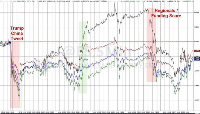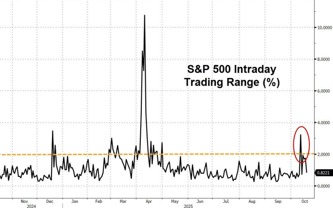 本周贸易冲突的再燃、美国区域银行信用风险的浮现以及对人工智能股票估值过高的担忧,共同引发了美股自4月以来最剧烈的市场动荡。标普500指数的盘中涨幅更是自4月以来首次突破2%。