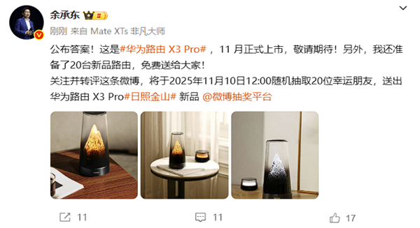 余承东公布华为路由X3 Pro是一款神秘新品,具有日照金山真身。