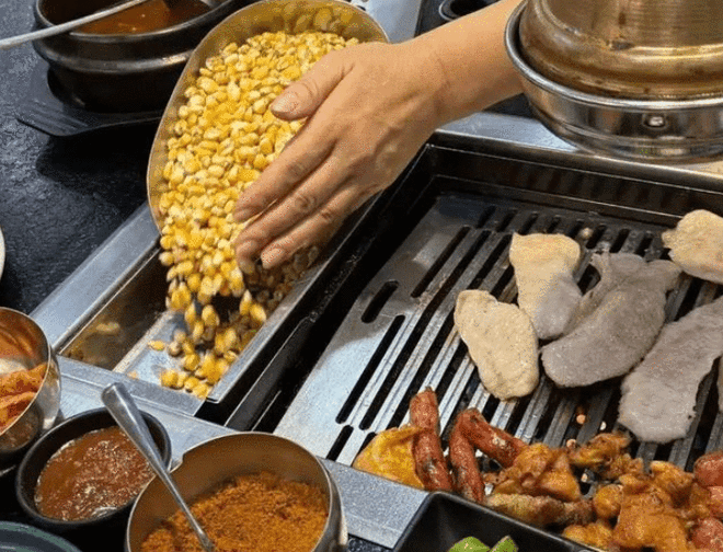 另一家名为“清潭洞原生态玉米烤肉店”的店铺同样推出玉米、炭火烤肉两种价格相同的方式。该店铺工作人员也透露,平时选择玉米烤肉的顾客更多。