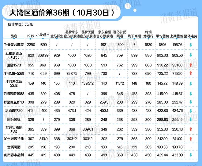 双十一期间高端白酒价格下滑,多家酒企整顿电商渠道乱象,大湾区酒价第36期。
