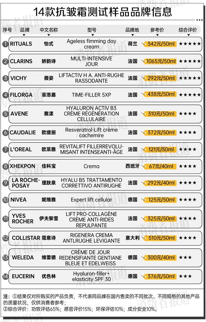 娇韵诗、欧莱雅和菲洛嘉等品牌14款抗皱霜对比显示,不同产品抗皱效果差异大,需根据个人肤质和需求选择合适的产品。