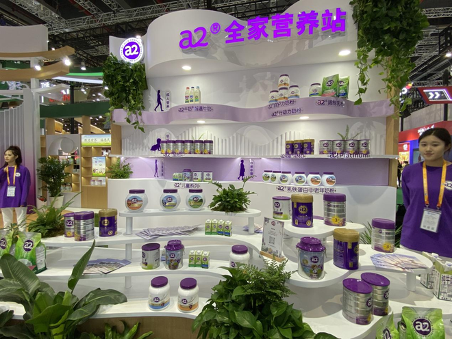 总部在新西兰的a2牛奶公司用品牌经典紫罐造型,打造出了一个沉浸式的体验空间,集中呈现其以A2型蛋白质为核心的科研成果和“a2全家营养解决方案”布局,涵盖从婴幼儿、儿童、成年人到老年的全年龄阶段,并在进博会期间与中国农垦控股上海有限公司再度扩容战略合作伙伴协议,重磅亮相a2紫曜™HMO系列婴幼儿配方奶粉。