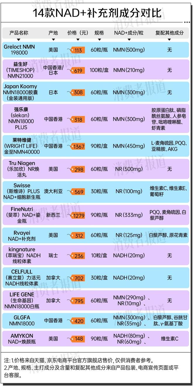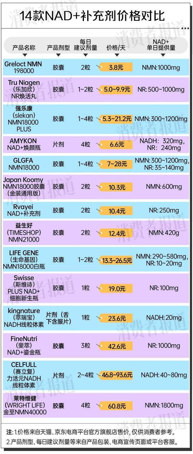 14款NAD+补充剂对比:有效成分含量不一,价差近25倍