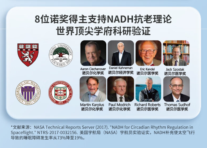 此外,《消费者报道》发现,商家还热衷于为产品打造“科学贵族”的人设,例如Rvayei、Tru Niagen(乐加欣)、CELFULL(赛立复)等品牌就在其宣传页面上将NAD+补充剂与诺贝尔奖关联起来。需要注意的是,诺贝尔奖表彰的是基础科学的突破(如NAD+在能量代谢中的核心角色),而非直接证明某款NAD+补充剂的功效。